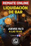 ✅REMATE ONLINE✅JUEVES 19/3⏰19:00 HS ✨LIQUIDACIÓN DE BAR✨BARRA✨MESAS✨SILLAS✨BANQUETAS✨DECORACIÓN✨ILUMINACIÓN y MUCHO MÁS!⌛BASES MUUUY BAJAS!! Si no puede estar durante la transmisión puede hacer su pre oferta